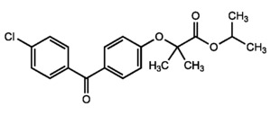n. m. (DCI). Normolipémiant de la classe des fibrates : 2-{4-[(4-chlorophényl)carbonyl]phénoxy}-2-méthylpropanoate de propan-2-yle.