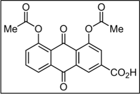 n. f. (DCI). Dérivé diacétylé de la rhéine, anthraquinone existant à l’état libre et sous forme de glucosides dans les sénés et la rhubarbe. Antiarthrosique dit « d’action lente », à rapport bénéfice – risques très discuté, et de mécanisme mal connu ; agirait par inhibition de l’interleukine-1 et favoriserait la synthèse des constituants du cartilage.