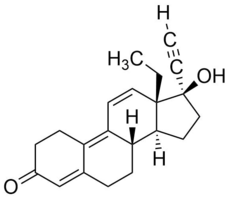 Son mécanisme d’action est complexe, à la fois progestatif et antiprogestagène ; c'est un faible androgène et un stéroïde anabolisant, un faible antigonadotrope, un inhibiteur faible de la stéroïdogenèse et un antiœstrogène fonctionnel.