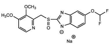 n. m. (DCI). Dérivé benzimidazolé, apparenté à l'oméprazole, inhibiteur irréversible de la pompe à protons H+/K+-ATPase de la cellule pariétale gastrique conduisant ainsi à une diminution de la sécrétion acide. Le mécanisme d'action de cette classe de composés passe par la formation d'un lien covalent de type disulfure avec les cystéines du site actif de l'enzyme.